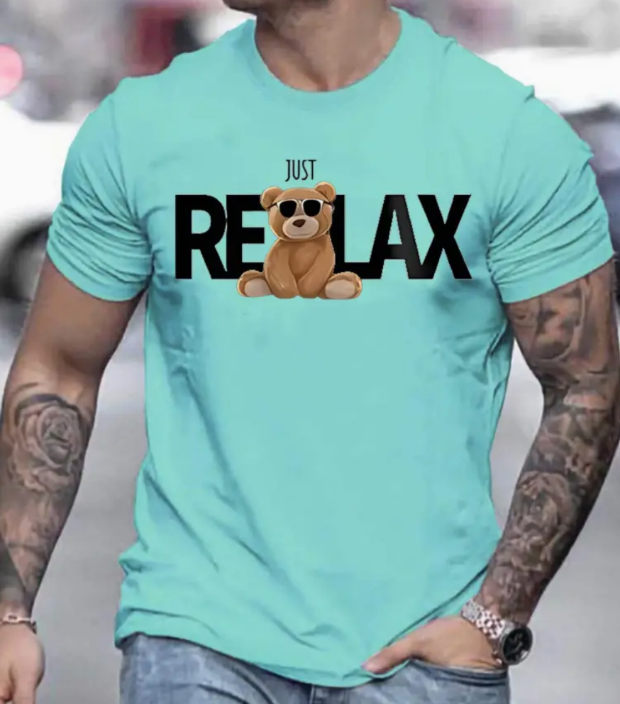 ONTSPANNEN Beer Afdruk Ronde Hals T-shirt