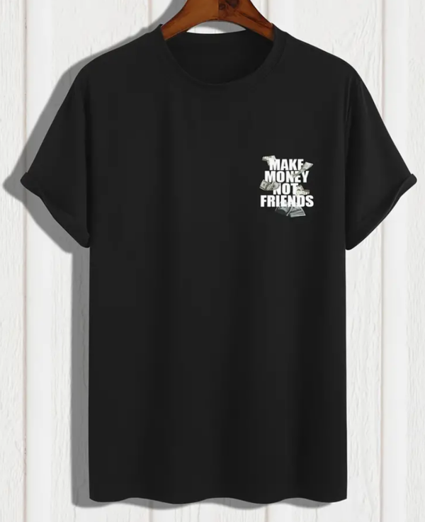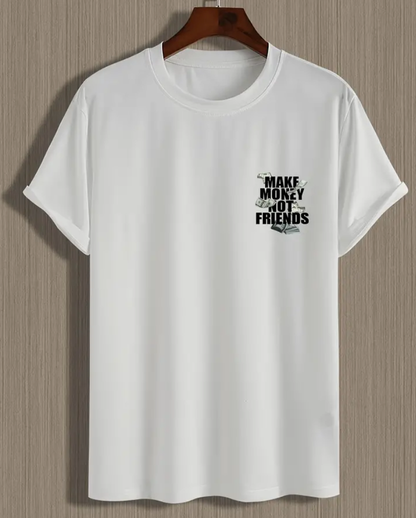 "Verdien geld, geen vrienden" Creatief bedrukt heren casual T-shirt